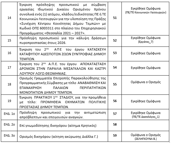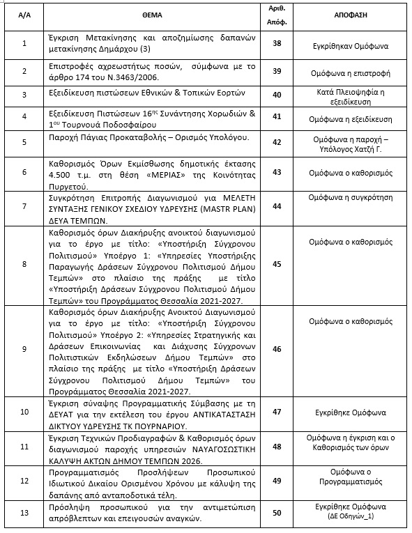 Θεμάτων Αποφάσεων Τακτικής Συνεδρίασης Δημοτικής Επιτροπής (διά ζώσης)